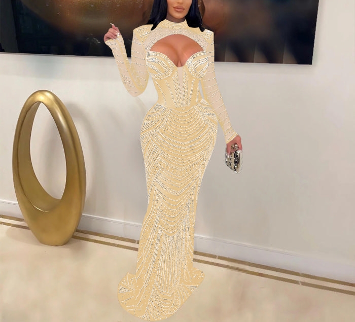 (Apricot)2022 Styles Women Sexy Spring&Winter TikTok&Instagram Styles Sequins Maxi DressSKU: #CF79017-4