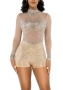 (Apricot)2023 Styles Women Sexy&Fashion Spring&Summer TikTok&Instagram Styles Sequins Mesh Long Sleeve RomperSKU: #CF27205-2