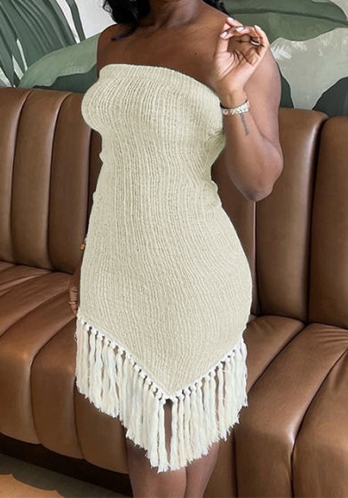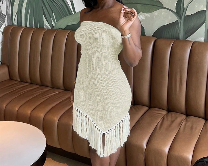 (Apricot)2023 Styles Women Sexy&Fashion Spring&Summer TikTok&Instagram Styles Sweater Tube Tassel Mini DressSKU: #CF47711-3