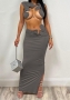 (Apricot)2024 Styles Women Summer 3D Lace Crop Top Sexy Open-Work Split Slim Long Dress SetSKU: #CF83347-6