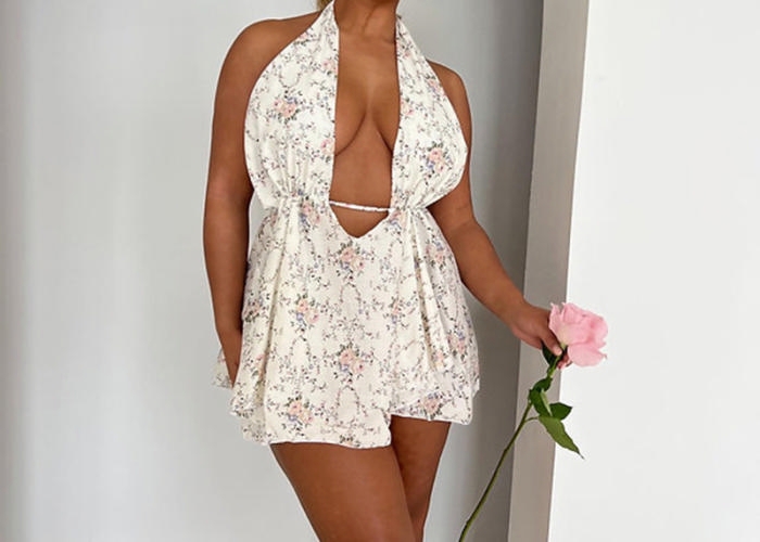(Apricot)2024 Styles Women Summer Slim Sexy Spicy V-Neck Halter Mini DressSKU: #XF92844-3