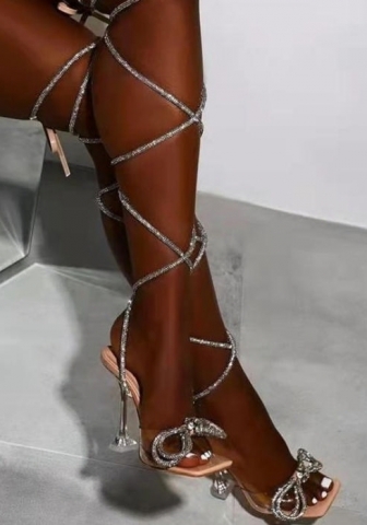 (Apricot)2025 Styles Women Crystal-Encrusted Ribbon Bow Stiletto Heel SandalsSKU: #OU3010-2