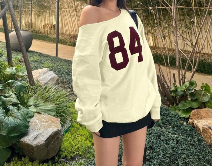 (Apricot,Only Tops)2024 Styles Women Autumn/Winter Printed Cropped Slouchy Hoodie with Relaxed Drawstring Pants SetSKU: #CF88314-2