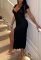 (Black)2022 Styles Women Fashion Instagram Styles Cotton Front Button Short Sleeve Maxi DressSKU: #CF12333-2