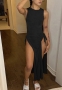 (Black)2022 Styles Women Fashion Instagram Styles Double High Split Maxi DressSKU: #CF48776-2