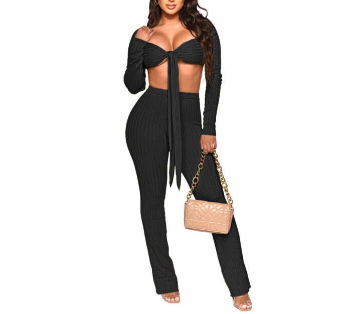 (Black)2022 Styles Women Fashion Spring&Winter TikTok&Instagram Styles Bra+Long Pants Two Piece SuitSKU: #XF82073-2