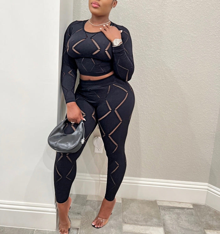 (Black)2022 Styles Women Fashion Spring&Winter TikTok&Instagram Styles Cut Out Two Piece SuitSKU: #XF82062-1