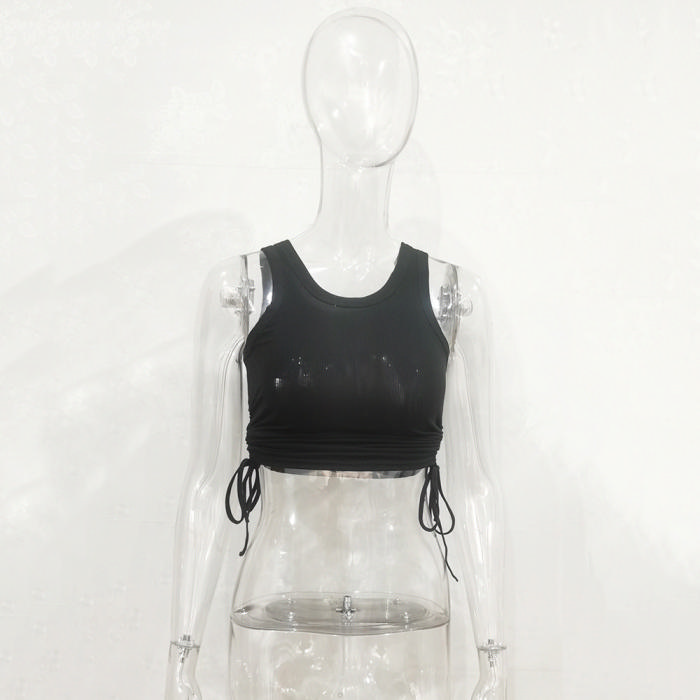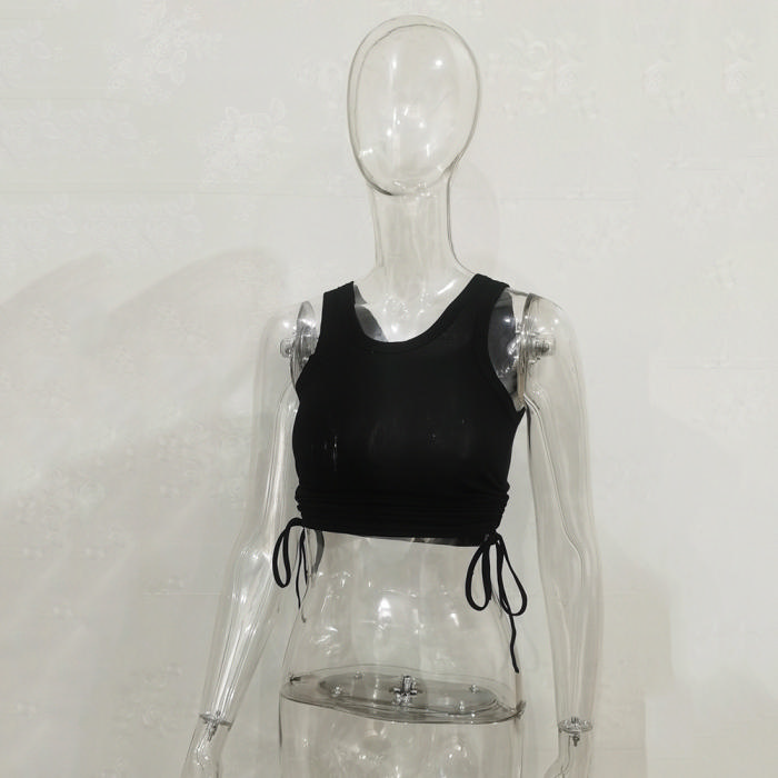 (Black)2022 Styles Women Fashion Spring&Winter TikTok&Instagram Styles Double Ruffle Tie Tank TopsSKU: #CF34076-5