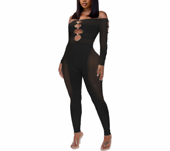 (Black)2022 Styles Women Fashion Spring&Winter TikTok&Instagram Styles Lace Cut Out JumpsuitSKU: #XF82084-2