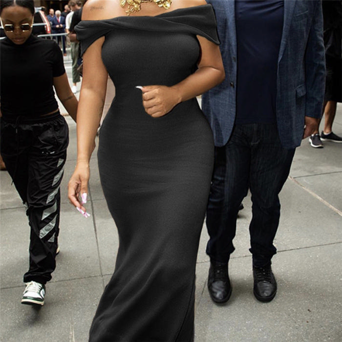 (Black)2022 Styles Women Fashion Spring&Winter TikTok&Instagram Styles Off Shoulder Maxi DressSKU: #CF48912-2