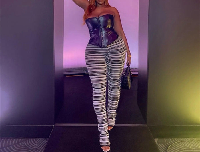 (Black)2022 Styles Women Fashion Summer TikTok&Instagram Styles Contrast Color Long PantsSKU: #CF77005-2