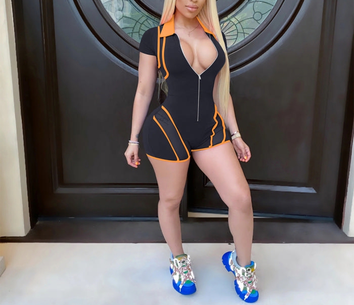 (Black)2022 Styles Women Fashion Summer TikTok&Instagram Styles Front Zipper Mesh RomperSKU: #XF13435-2