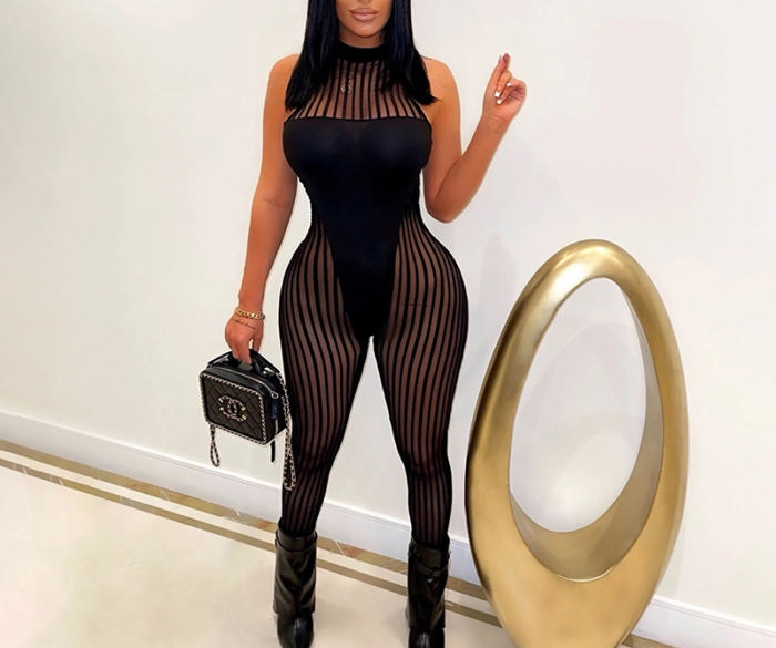 (Black)2022 Styles Women Fashion Summer TikTok&Instagram Styles Lace Sleeveless JumpsuitSKU: #CF49894-2