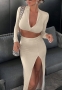 (Black)2022 Styles Women Fashion Summer TikTok&Instagram Styles Long Sleeve Crop Tops + Maxi Skirts Two Piece DressSKU: #XF92637-3