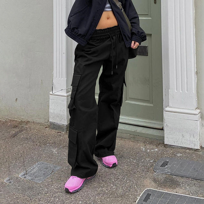 (Black)2022 Styles Women Fashion Summer TikTok&Instagram Styles Loose Long PantsSKU: #CF77075-2