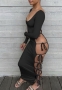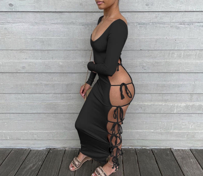 (Black)2022 Styles Women Fashion Summer TikTok&Instagram Styles Single Lace Up Long Sleeve Maxi DressSKU: #CF48843-2