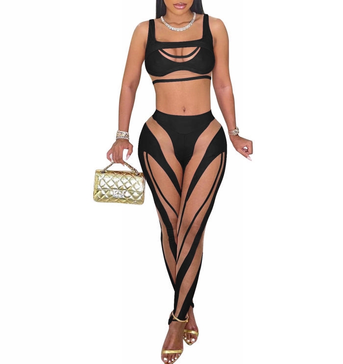 (Black)2022 Styles Women Sexy Spring&Winter TikTok&Instagram Styles Mesh Two Piece SuitSKU: #TP025-4