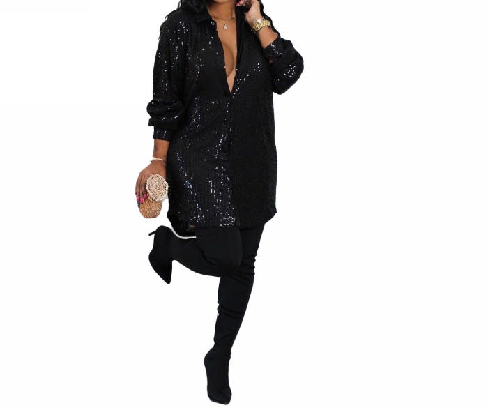 (Black)2022 Styles Women Sexy Spring&Winter TikTok&Instagram Styles Sequin Long Sleeve Mini DressSKU: #XF27302-1