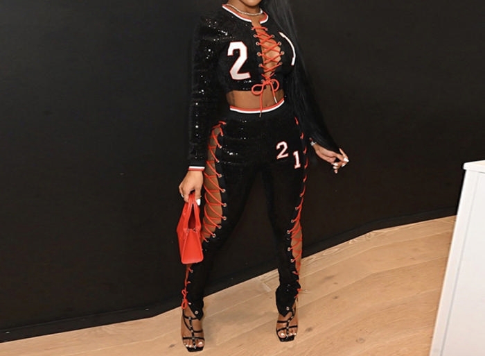 (Black)2022 Styles Women Sexy Spring&Winter TikTok&Instagram Styles Sequin Number Two Piece SuitSKU: #CF75031-2