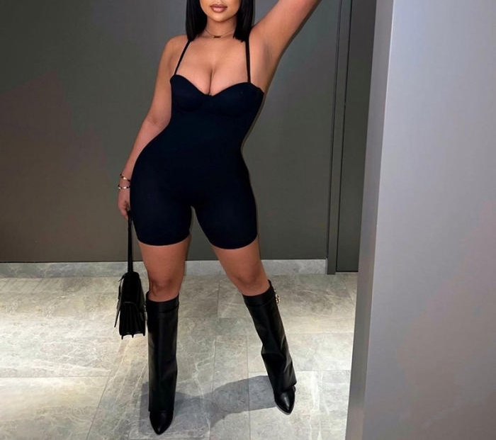 (Black)2022 Styles Women Sexy Spring&Winter TikTok&Instagram Styles Strap Solid Color RomperSKU: #CF47421-3