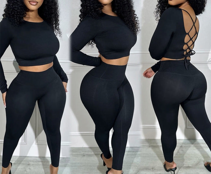 (Black)2023 Styles Women Sexy&Fashion Autumn/Winter TikTok&Instagram Styles Back Lace Up Two Piece SuitSKU: #CF47776-2