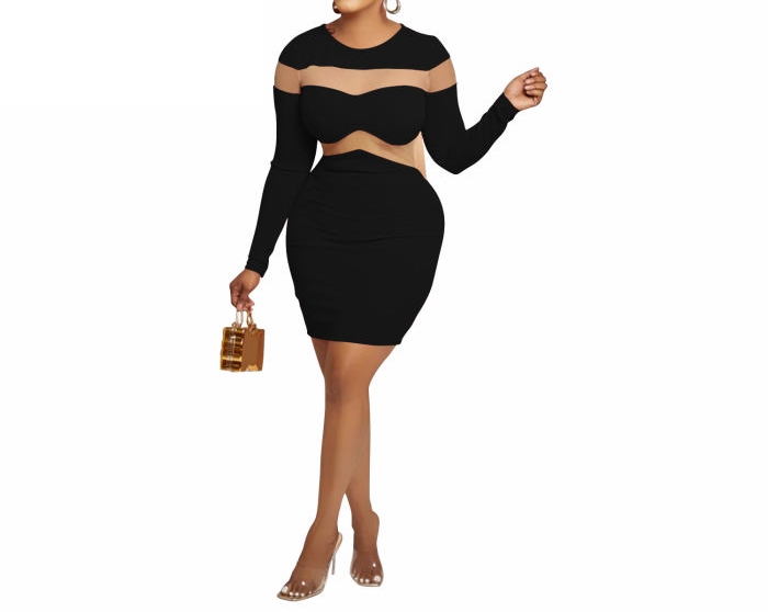 (Black)2023 Styles Women Sexy&Fashion Autumn/Winter TikTok&Instagram Styles COntrast Color Long Sleeve Mini DressSKU: #XF73019-2