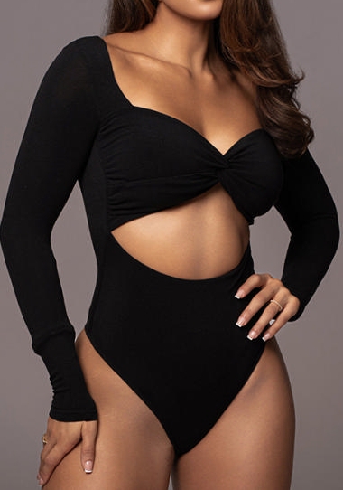 (Black)2023 Styles Women Sexy&Fashion Autumn/Winter TikTok&Instagram Styles Cut Out Long Sleeve BodysuitSKU: #XF62631-2