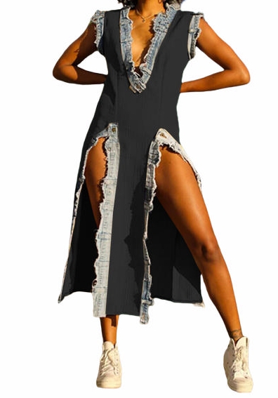 (Black)2023 Styles Women Sexy&Fashion Autumn/Winter TikTok&Instagram Styles Jeans Side Maxi DressSKU: #XF79007-1