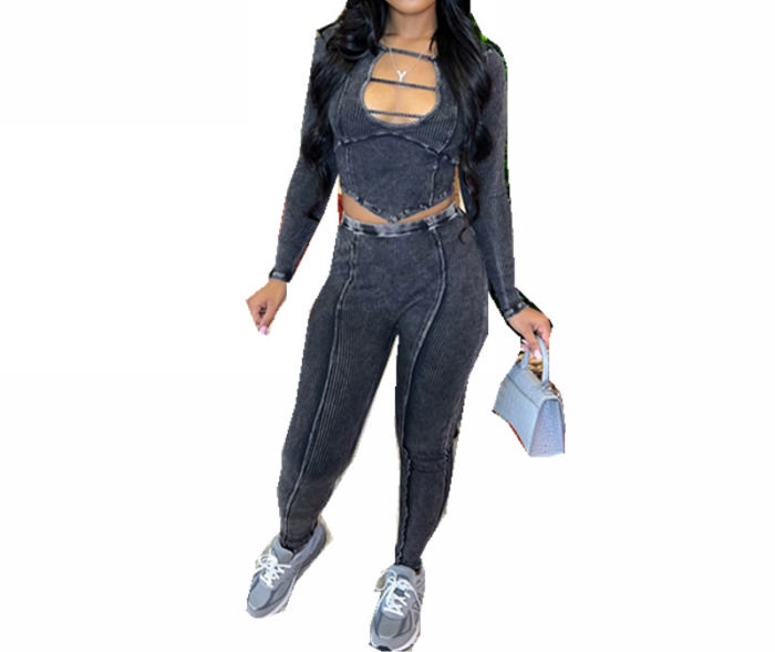 (Black)2023 Styles Women Sexy&Fashion Autumn/Winter TikTok&Instagram Styles Long Sleeve Two Piece SuitSKU: #TP111-1