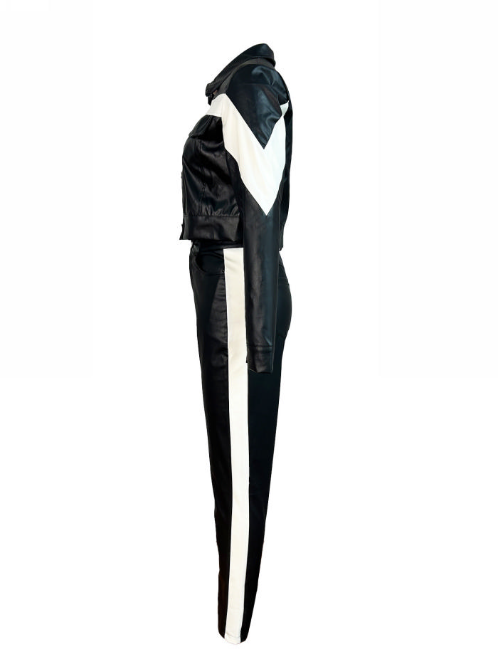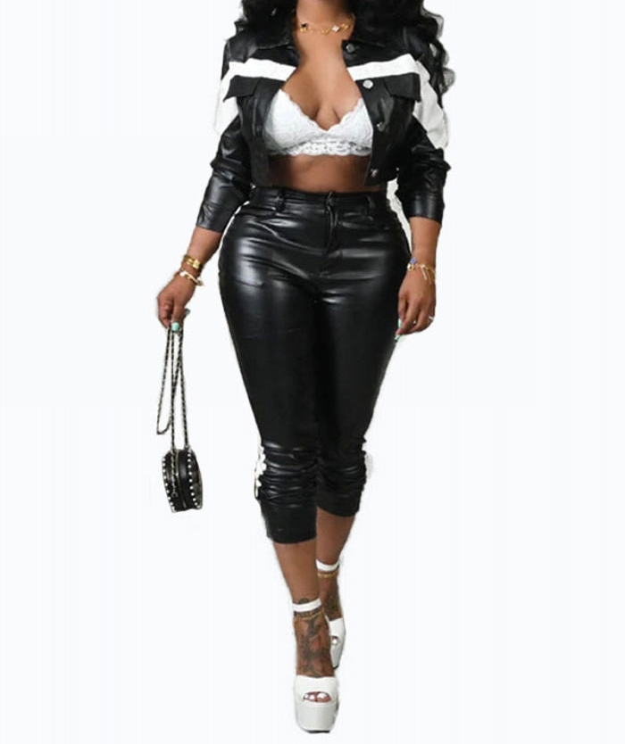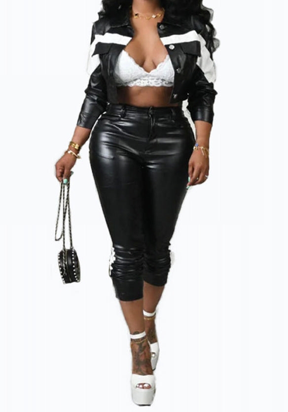 (Black)2023 Styles Women Sexy&Fashion Autumn/Winter TikTok&Instagram Styles PU Two Piece SuitSKU: #OEM6004-1