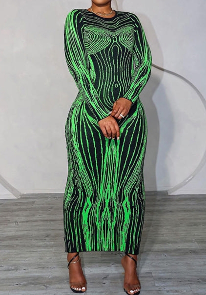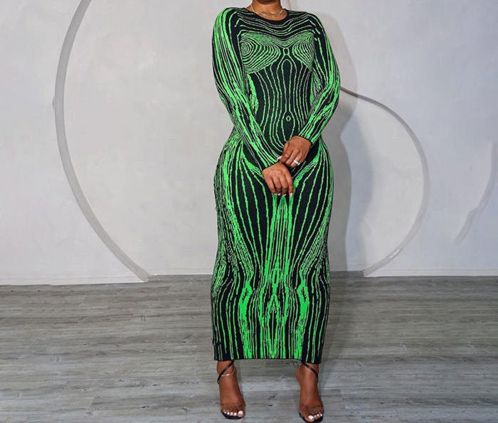(Black)2023 Styles Women Sexy&Fashion Autumn/Winter TikTok&Instagram Styles Print Long Sleeve Maxi DressSKU: #CF83249-2