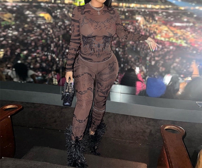 (Black)2023 Styles Women Sexy&Fashion Autumn/Winter TikTok&Instagram Styles Print Mesh Two Piece SuitSKU: #CF77627-2