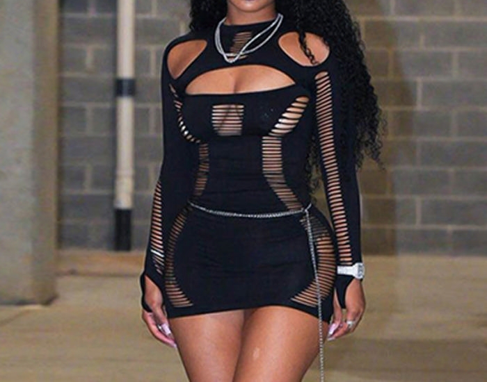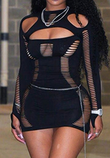 (Black)2023 Styles Women Sexy&Fashion Autumn/Winter TikTok&Instagram Styles Ripped Long Sleeve Club DressSKU: #CF88164-2