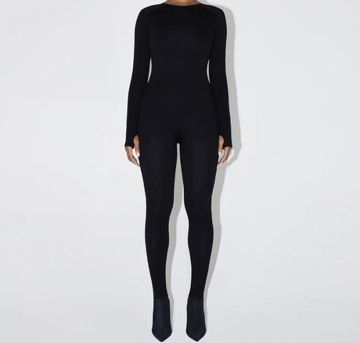 (Black)2023 Styles Women Sexy&Fashion Autumn/Winter TikTok&Instagram Styles Solid Color Long Sleeve JumpsuitSKU: #CF77754-2