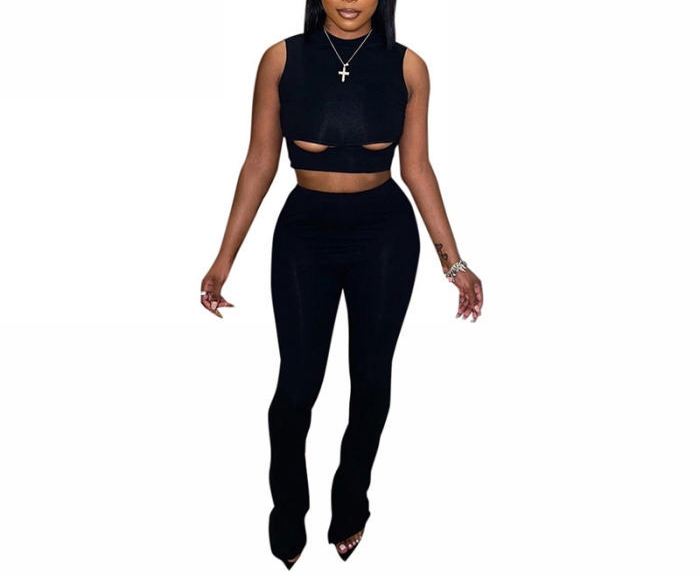 (Black)2023 Styles Women Sexy&Fashion Spring&Summer TikTok&Instagram Styles Cut Out Two Piece SuitSKU: #CF47496-2