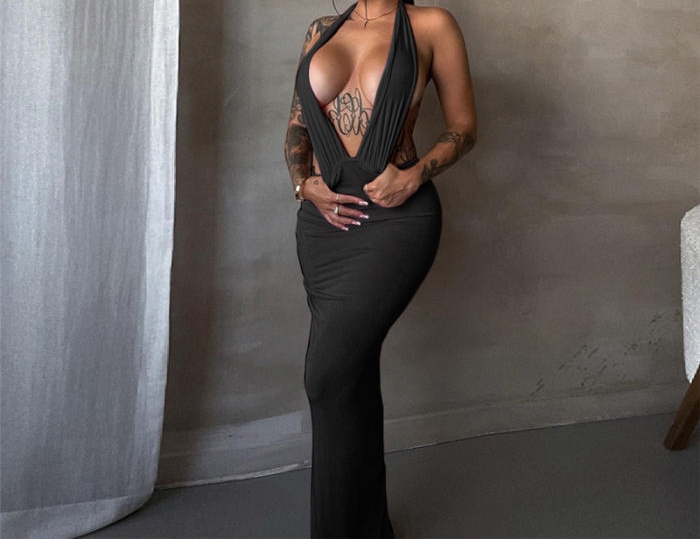 (Black)2023 Styles Women Sexy&Fashion Spring&Summer TikTok&Instagram Styles Deep V Neck Halter Maxi DressSKU: #CF83205-2