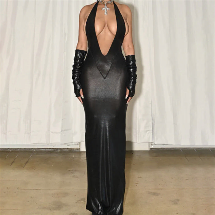 (Black)2023 Styles Women Sexy&Fashion Spring&Summer TikTok&Instagram Styles Deep V Neck Maxi DressSKU: #CF83088-3