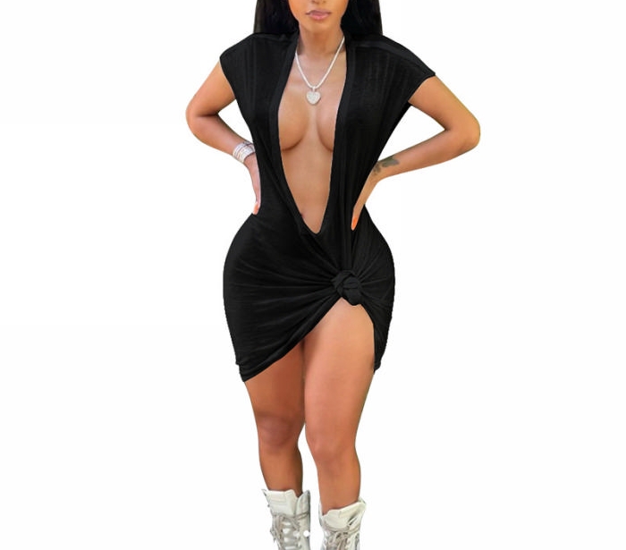 (Black)2023 Styles Women Sexy&Fashion Spring&Summer TikTok&Instagram Styles Deep V Neck Mini DressSKU: #OU190-4
