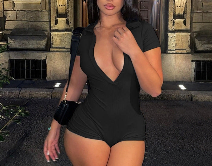 (Black)2023 Styles Women Sexy&Fashion Spring&Summer TikTok&Instagram Styles Deep V Neck RomperSKU: #TP031-3