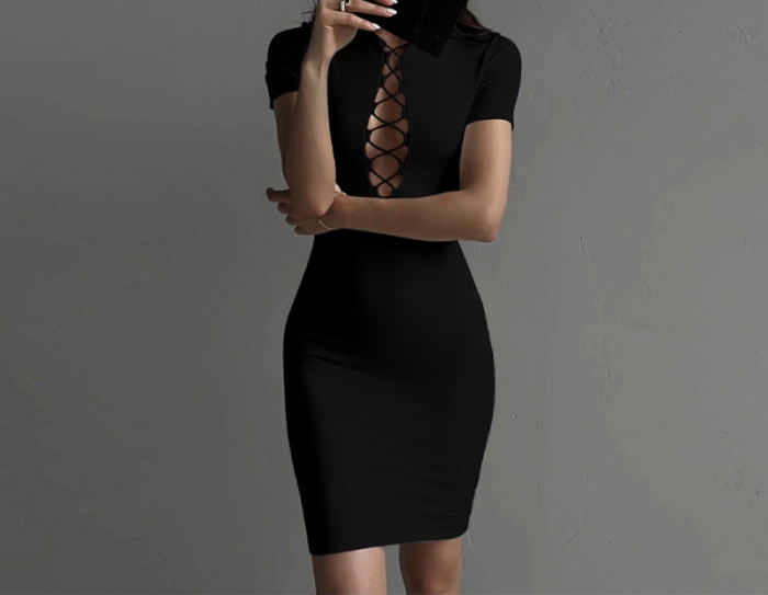(Black)2023 Styles Women Sexy&Fashion Spring&Summer TikTok&Instagram Styles Lace Up Short Sleeve Mini DressSKU: #CF88071-2