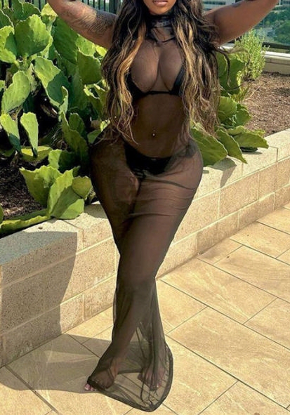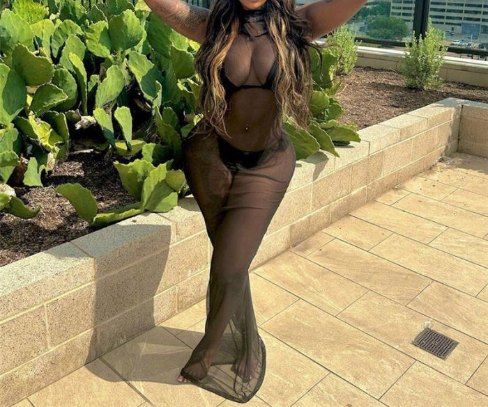 (Black)2023 Styles Women Sexy&Fashion Spring&Summer TikTok&Instagram Styles Mesh Hoodie Maxi DressSKU: #CF77425-2