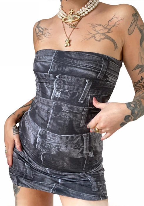 (Black)2023 Styles Women Sexy&Fashion Spring&Summer TikTok&Instagram Styles Print Tube Mini DressSKU: #CF22912-2