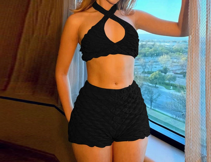 (Black)2023 Styles Women Sexy&Fashion Spring&Summer TikTok&Instagram Styles Short Two Piece SuitSKU: #CF88037-2