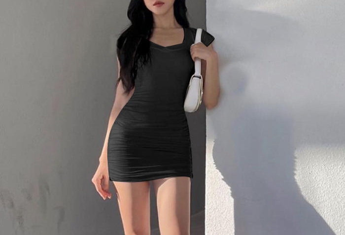 (Black)2023 Styles Women Sexy&Fashion Spring&Summer TikTok&Instagram Styles Solid Color Mini DressSKU: #OM383-2