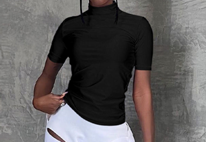 (Black)2023 Styles Women Sexy&Fashion Spring&Summer TikTok&Instagram Styles Solid Color Short Sleeve TeeSKU: #CF88007-3