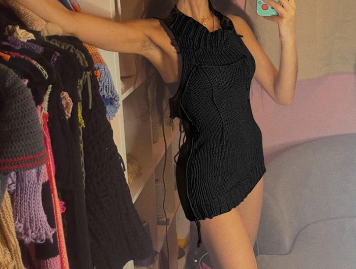 (Black)2023 Styles Women Sexy&Fashion Spring&Summer TikTok&Instagram Styles Sweater Mini DressSKU: #CF77391-2