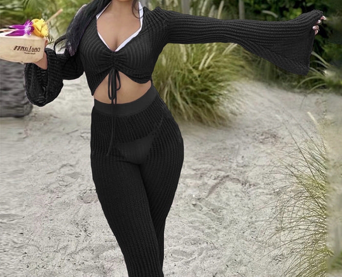 (Black)2023 Styles Women Sexy&Fashion Spring&Summer TikTok&Instagram Styles Sweater Two Piece SuitSKU: #CF83202-2