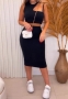 (Black)2024 Styles Plus Size Women Summer Fresh and Sweet Tank Top with High-Waist Midi Skirt Fashion Casual SetSKU: #CF91083-2