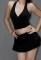 (Black)2024 Styles Women Backless Lace-Up Halter Top and Mini Skirt Set with Ruffled DetailSKU: #CF88300-2