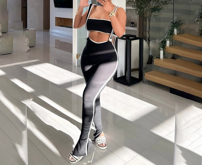 (Black)2024 Styles Women Color-Stretch Ribbed Overalls for Sporty Casual SetsSKU: #CF92048-4